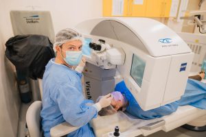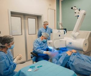 Interventiile LASER sunt minim invazive, sunt considerate mai sigure, cu complicatii posibile mai rare, mai usor de tratat si recuperare mai rapida. Un LASER (fie cu excimeri, fie cu femtosecunde) se aplica pe suprafata corneei, pe care o remodeleaza intr-un mod diferit in functie de fiecare tehnica disponibila (PRK, LASIK, SMILE, PRESBYOND). Procedura este rapida, de ordinul secundelor – cu ajutorul tehnologiei de ultima generatie, femtolaserul VisuMax 800, poate fi sub 10 secunde la tehnica SMILE; se realizeaza la ambii ochi in aceeasi zi, dupa care pacientul pleaca acasa, fara restrictii importante si fara pansament. Acuitatea vizuala se imbunatateste rapid, de cele mai multe ori, devenind foarte buna a doua zi postoperator, activitatile uzuale putand fi reluate cu usurinta. Tratamentul este doar local, cu picaturi.
